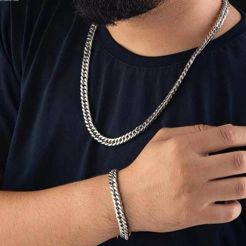 گردنبندودستبند مردانه کارتیر دوبل نقره ای